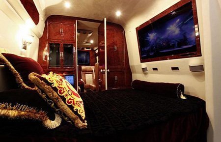 Chiếc Mercedes-Benz Sprinter này nắm giữ một sự pha trộn tuyệt đẹp, sang trọng là sự kết hợp hoàn hảo giữa công nghệ và nghệ thuật. Ngay khi mở cánh cửa bên ngoài thô ráp chúng ta có thể nhận ra hệ thống đèn bao quanh, hai ghế điều chỉnh điện cao cấp, một quầy bar nhỏ, ghế bọc da cao cấp, những điểm nhấn mạ vàng và bàn chỉnh điện được thiết kế riêng. Bên cạnh đó là một TV LED màn hình phẳng 46 inch và hải TV LED 19 inch có thể chơi cả Playstation, ngăn chứa iPad, "rạp hát tại gia" Bose, tủ lạnh và hệ thống âm thanh Alpine 1.000 W.